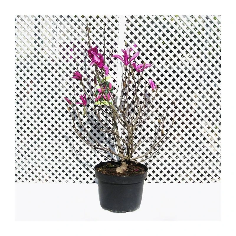 Magnolia susan es un árbol de hoja caduca con flores moradas, las cuales las realiza antes de la brotación de las hojas.